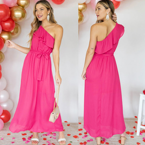 亚马逊外贸女装2022夏新款欧美荷叶边连衣裙设计感...