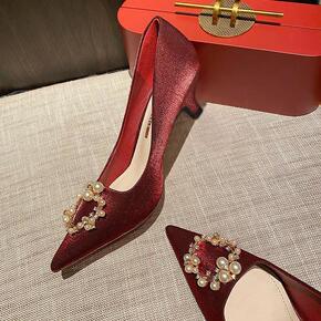 婚鞋新娘鞋2022年新款平时可穿高跟鞋红色细跟婚纱...