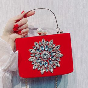 旗袍包镶钻晚宴包晚装礼服包手拿手提包绒布太阳花钻石...