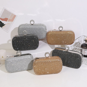 新款方形晚宴包 女士戒指镶钻手拿包晚装年会时尚新娘...