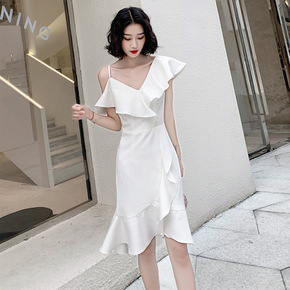 亮片晚礼服2022新款夏季流苏鱼尾长款主持宴会一字...