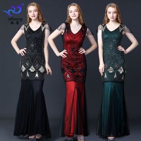 1920晚礼服裙聚会亮片连衣裙舞裙 双V领主持人长...