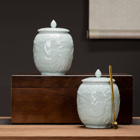 青瓷陶瓷茶叶罐密封罐普洱茶罐茶叶密封罐储存罐家用茶...