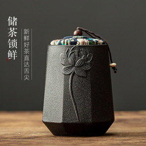 粗陶茶叶罐陶瓷密封罐防潮茶仓复古普洱茶叶盒大号家用...