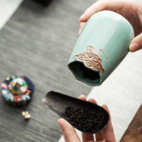 汝窑陶瓷茶叶罐小号迷你旅行普洱花绿茶密封存储罐单罐...