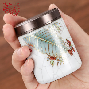 哥窑茶叶罐陶瓷密封罐茶罐小号普洱装茶叶盒便携存茶罐...