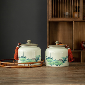 茶叶包装盒中式大号陶瓷密封罐宫廷风茶罐毛尖普洱红茶...