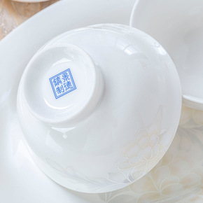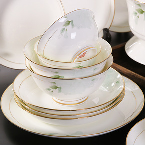 景德镇家用骨瓷餐具套装中式清雅名媛陶瓷碗碟盘瓷碗套...