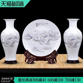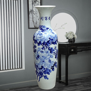 办公室大手绘酒店青花瓷装饰花瓶开业景德镇陶瓷摆件落...