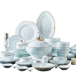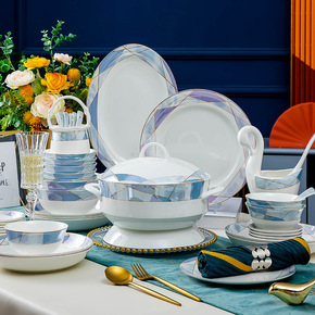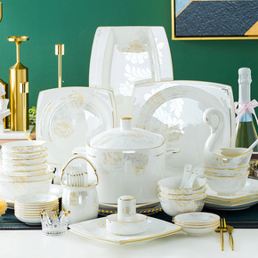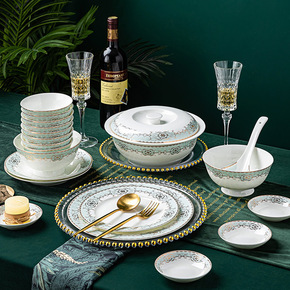 景德镇陶骨瓷餐具碗碟套装家用欧式轻奢高档乔迁送礼碗...