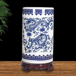 景德镇手工陶瓷花瓶瓷器花插青花瓷箭筒卷轴缸书字画缸...