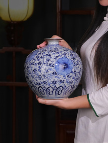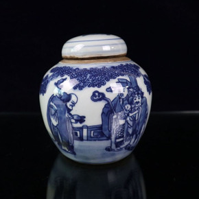 瓷器工艺品批发青花人物图纹盖罐新中式创意摆件收藏一...