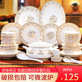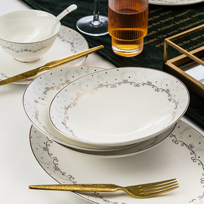 碗碟套装家用景德镇骨瓷碗筷欧式陶瓷器吃饭套碗盘子中...