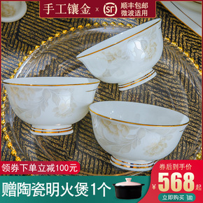景德镇陶瓷碗碟套装饭碗餐具家用手工陶瓷碗单件轻奢金...