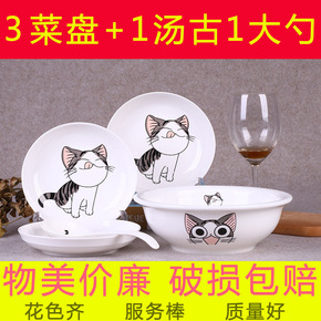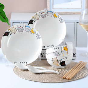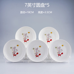 5个盘子陶瓷菜盘套装餐具组合水果盘家用圆形可爱小吃...