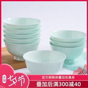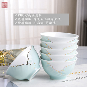 景德镇青瓷家用骨质瓷饭碗中式高脚碗套装4/6/10...