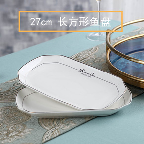 2个蒸烤菜鱼盘子家用陶瓷大号新款长方形创意菜盘子中...