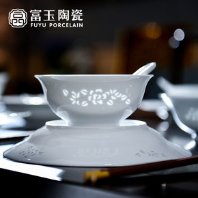 富玉陶瓷景德镇玲珑瓷釉下彩餐具套装碗盘家用风简约中...