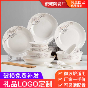 碗碟套装 家用中式 简约陶瓷餐具碗筷礼盒套装景德镇...