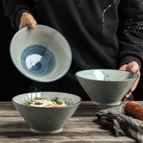 景德镇家用陶瓷碗小号喇叭斗笠碗米饭碗日式餐具复古怀...
