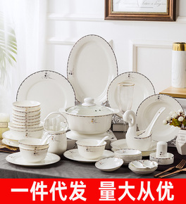 景德镇碗碟套装家用50/55/88件陶瓷盘子碗米饭...
