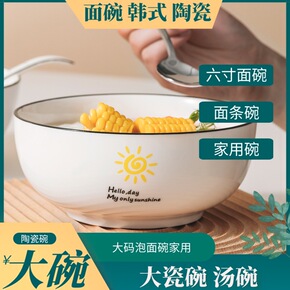 面碗家用饭碗大号汤碗瓷碗韩式可爱6寸碗单个颜值大碗...