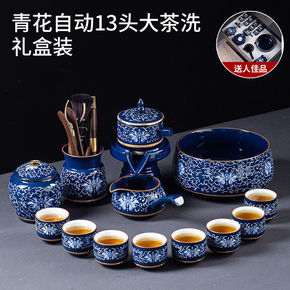 景德镇茶具套装茶盘办公家用鎏银石磨自动泡茶壶功夫茶...