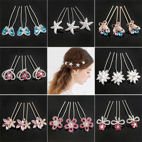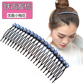 梳盘水钻刘海插金属材质头发梳发卡钻叉梳发夹发梳头饰...
