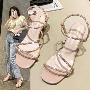 凉鞋女2021夏季新款水钻一字带仙女风时装高跟鞋罗...