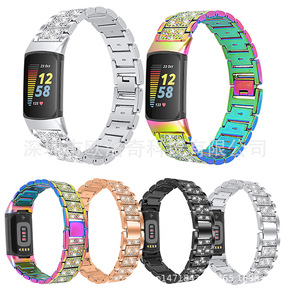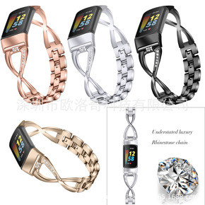 适用于Fitbit charge5表带大X锌合金镶...