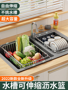 可伸缩水槽沥水架304不锈钢厨房洗碗洗菜盆晾放沥水...