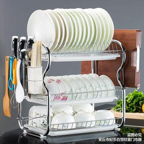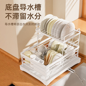 厨房碗碟置物架盘子碗筷双层晾放碗架沥水架篮洗碗盘收...