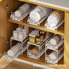 下橱柜抽拉碗碟橱柜内置单层碗盘沥水厨房收纳碗柜晾放...