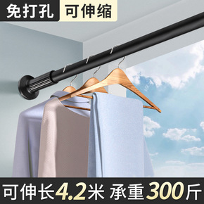 衣柜挂衣杆免打孔伸缩不锈钢凉衣服杆子衣柜横杆可调节...