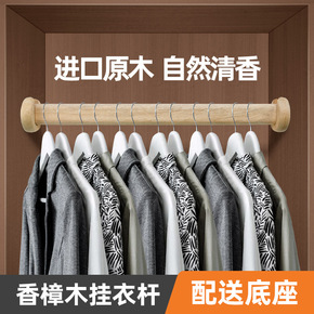 厂家直销加粗款香樟木衣柜挂衣杆实木撑杆加厚衣托法兰...