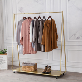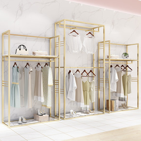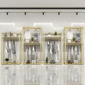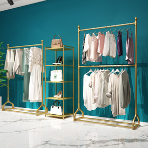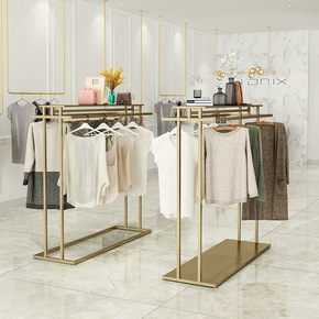 服装店服装货架水管展示架陈列落地式特卖挂衣架服金色...
