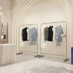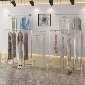 服装店落地式展示架不锈钢银色衣服架子侧挂架展示挂衣...