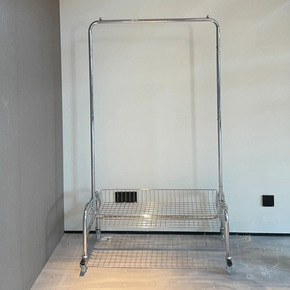 服装展示架落地式不锈钢带轮拉丝银色侧挂壁挂男女装店...