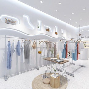 服装店展示架不锈钢银色落地式中岛货架移动正挂女装店...