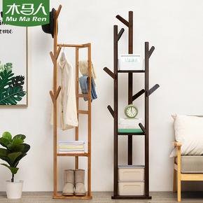简易衣帽架挂衣架落地客厅卧室儿童衣架创意实木质衣服...