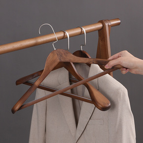 衣架宽肩实木衣架家用复古原木无痕木质衣挂西装大衣西...