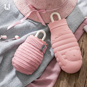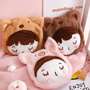 韩版冬季暖手宝可爱ins笑脸毛绒热水袋萌妹子注水便...