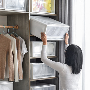 .加厚抽屉式桌面收纳盒衣柜衣服储物盒化妆品收纳箱首...