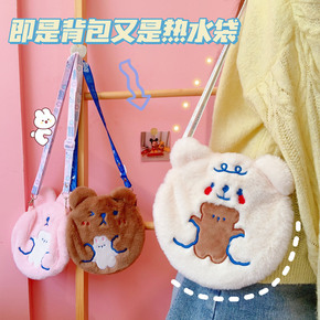 韩国ins风新款热水袋 简约可爱卡通动物女孩图案毛...