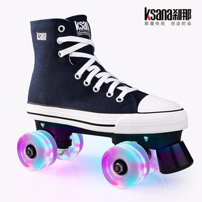 跨境货源成人男女双排高帮帆布轮滑鞋四轮双排溜冰鞋闪...