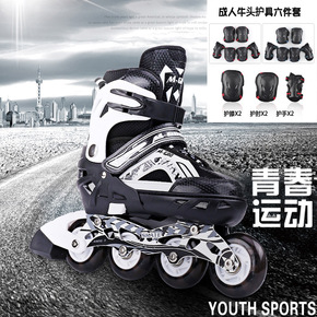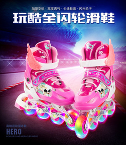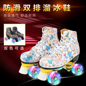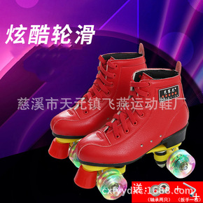 现货批发成人双排溜冰鞋新款闪光轮耐磨四轮旱冰鞋双排...