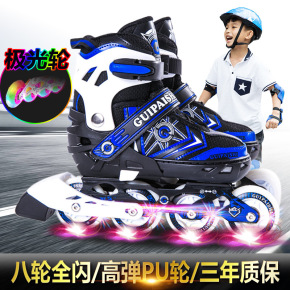 跨境热销双排溜冰鞋四轮全闪滑鞋旱冰鞋男女成人儿童滑...