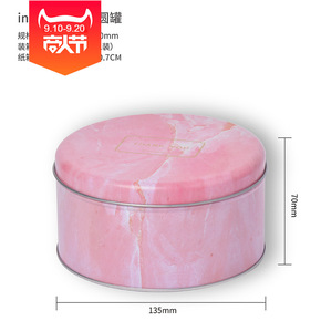 圆形粉色大理石 糖果铁罐子曲奇饼铁罐礼品铁罐 马卡...
