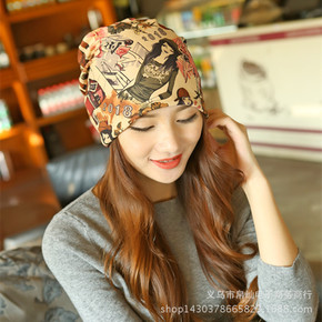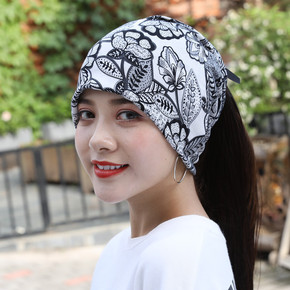 新款夏季包头帽批发韩版透气薄款女套头帽印花围脖两用...