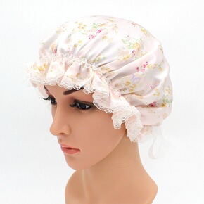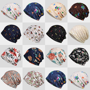 春夏季套头帽子女彩色蕾丝花朵印花网孔镂空透气包头帽...